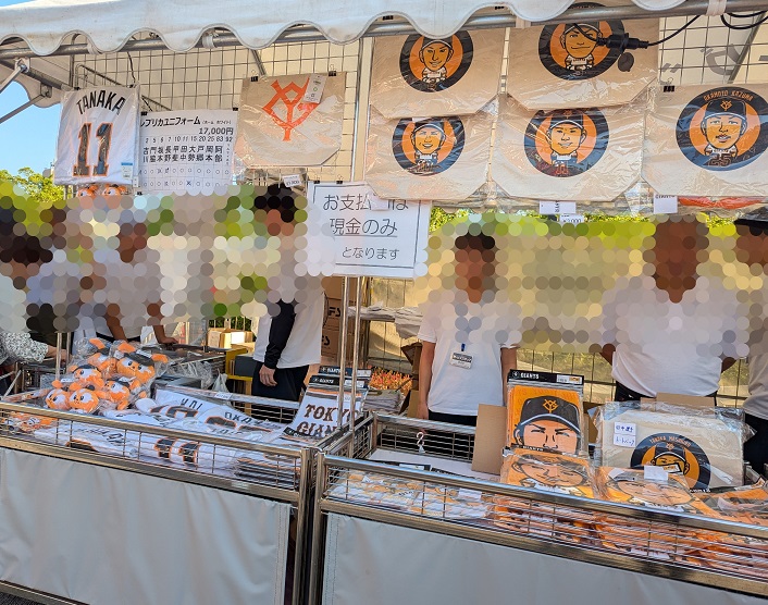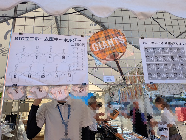 ジャイアンツの選手タオル、キーホルダー、トートバッグなどがありました。